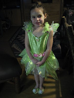 When we got back to the cabin Cecily put on her tinkerbell costume we brought from home to match her face painting.